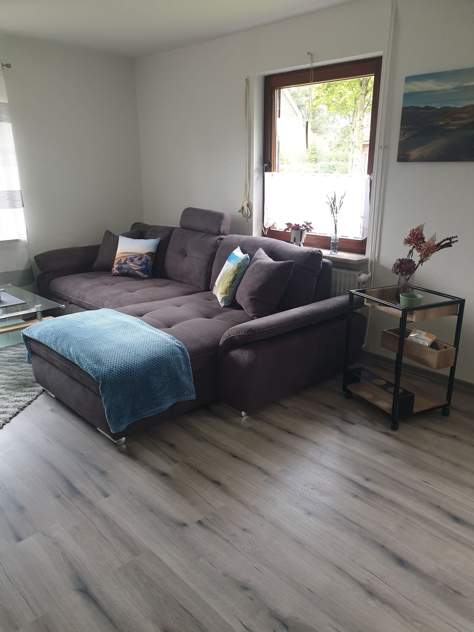 Das gemütliche Sofa lädt zum Entspannen ein.