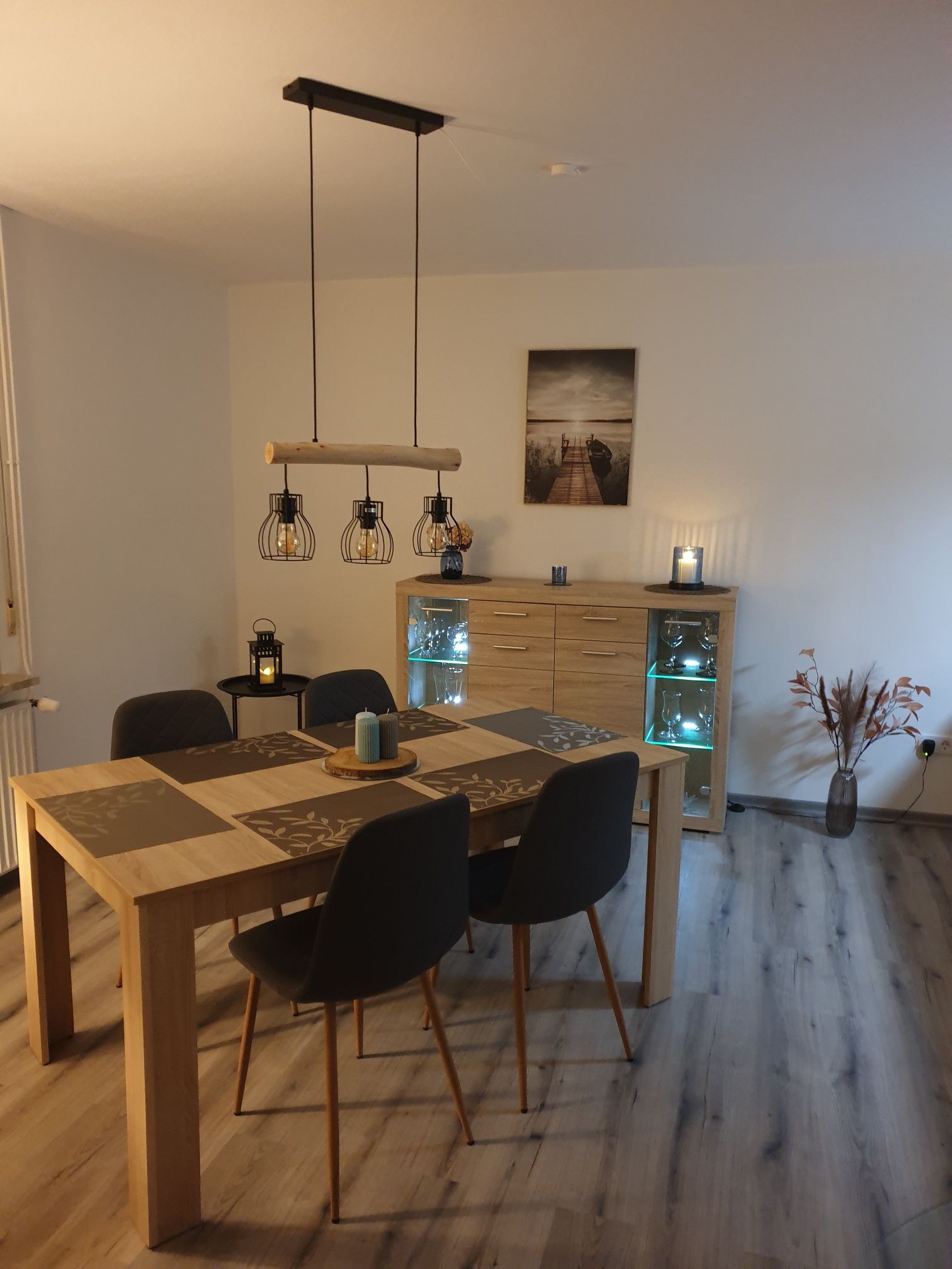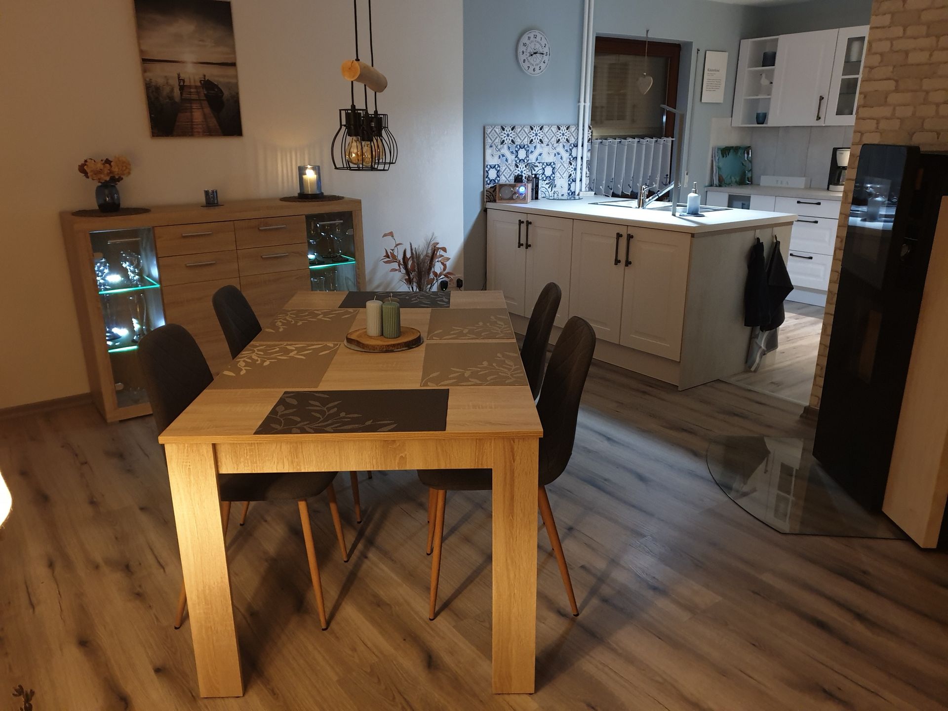 Das Herzstück des Ferienhauses ist die neue, im modernen Landhausstil gehaltene, offene, vollausgestattete Küche. Von der aus gelangen Sie anliegend ins Wohn-Esszimmer. Hier wird Ihnen ein hochwertiger Marken - Pelletofen in der kalten Jahreszeit, wohlige Wärme vermitteln.